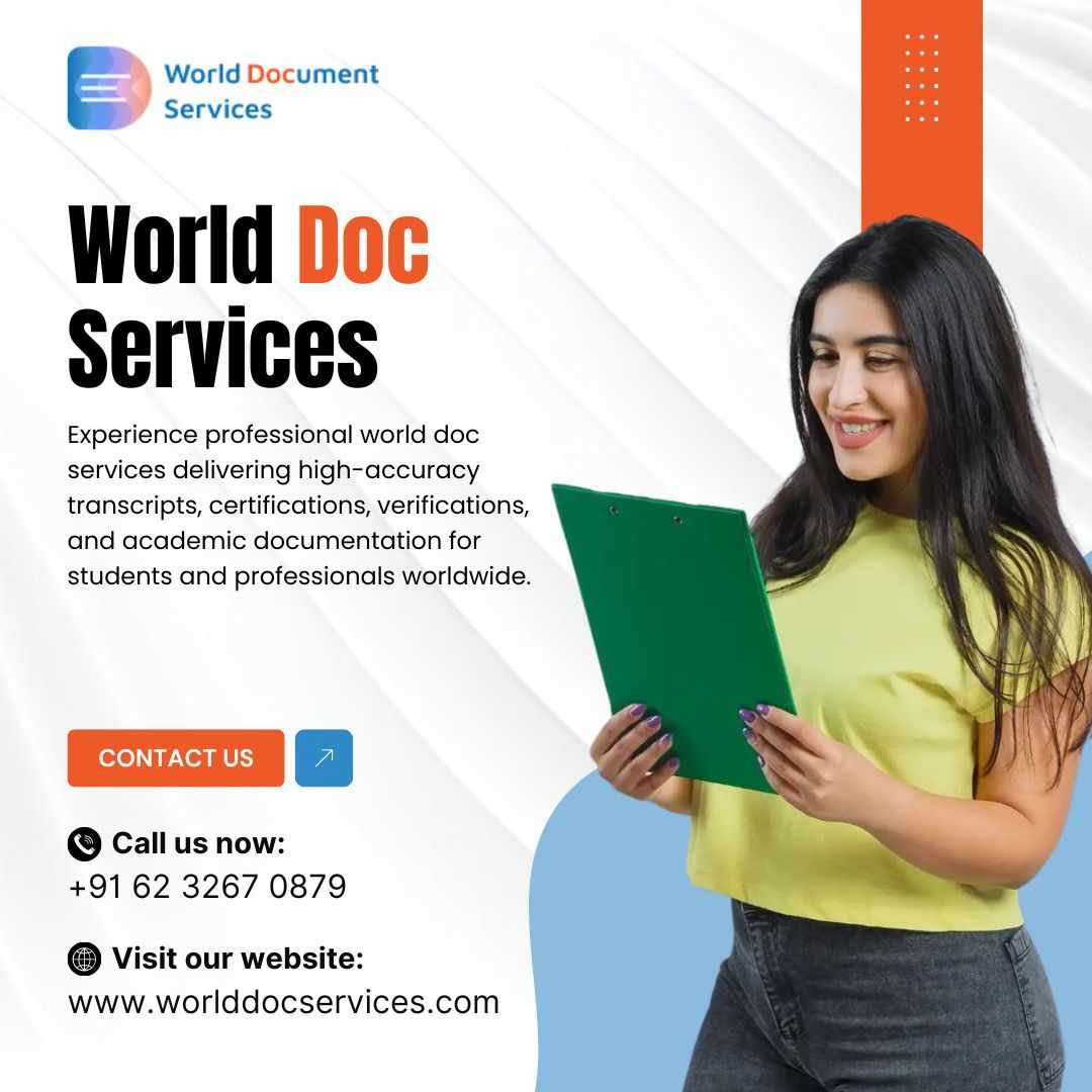Experience professional world doc services delivering high-accuracy transcripts, certifications, verifications, and academic documentation for students and professionals worldwide. Whether you need university transcripts, sealed envelopes, digital copies, or official attestation, we make the entire process fast, transparent, and stress-free. Stay confident knowing your documents are prepared and processed with care. All solutions are backed by worlddocservices to ensure trustworthy service.